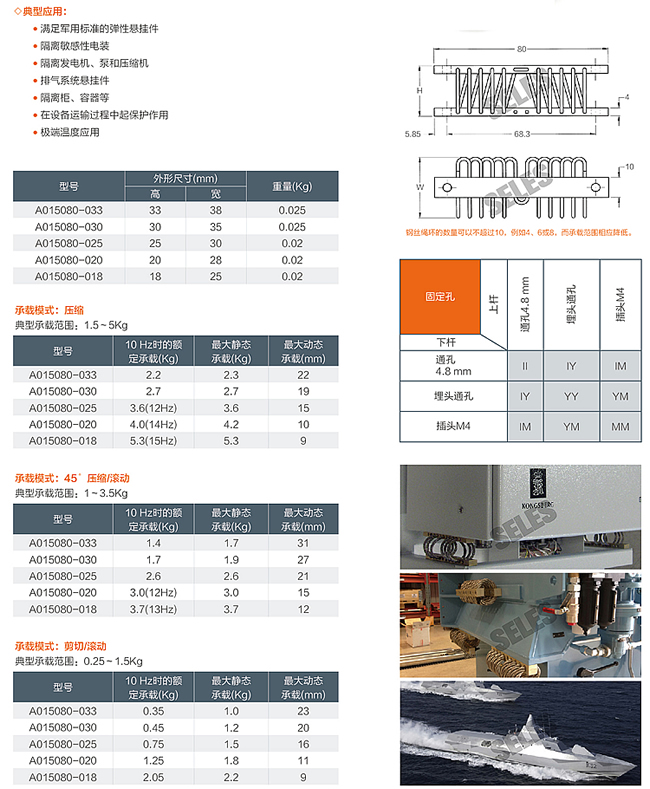 ● 滿足軍用標準的彈性懸掛件