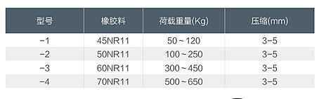 ● 材料:標準結構:橡膠彈性體系硬度為45~70邵爾A的天然橡膠(NR)